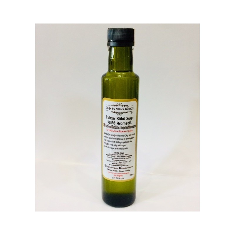 İçindekiler: Distilasyon yoluyla elde edilmiş içme amaçlı Çakşır Kökünden üretilmiş suyu.